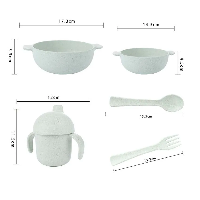Key Features of the Children's Plate, Bowl, Cup, Fork, and Spoon Tableware Set