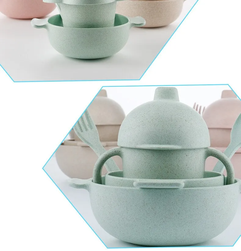 This set includes everything your child needs for a complete mealtime experience: a plate, bowl, cup, fork, and spoon. The set ensures your little one has the right tools to eat independently, making mealtime more enjoyable and easier for both parents and children. Each item is thoughtfully designed to fit your child's needs as they develop fine motor skills and learn to feed themselves.