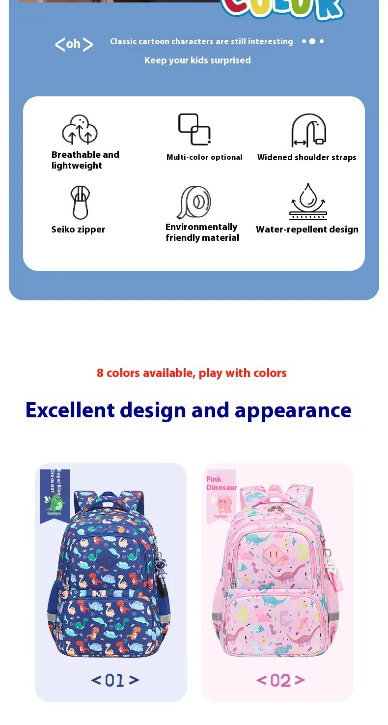 Crafted from high-quality materials, the waterproof schoolbag is built to last. Despite its durable construction, it remains lightweight enough for young children to carry without difficulty. The strong zippers and reinforced stitching add to the bag’s durability, ensuring it can withstand daily wear and tear from school life.