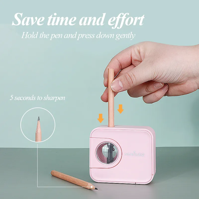 Equipped with a durable and powerful motor, this sharpener efficiently sharpens pencils within seconds, reducing breakage and waste. Its safety auto-stop feature prevents operation when the shaving cover is removed, making it child-friendly and ideal for school and home use. The compact and battery-powered design allows for portable use, ensuring students can sharpen their pencils wherever they go.