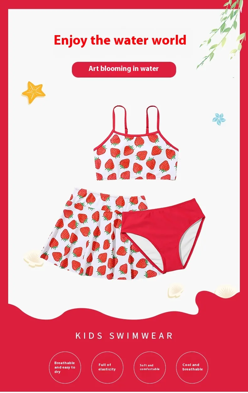Introduce your little one to the ultimate swimwear ensemble with the Children’s Swimsuit Three-Piece Girls' Skirt Middle and Big Children's Ruffled Split Swimsuit. Designed for both style and comfort, this three-piece swimsuit set is perfect for young swimmers in New Zealand, whether they're splashing at the beach in Auckland or swimming at the pool in Christchurch.