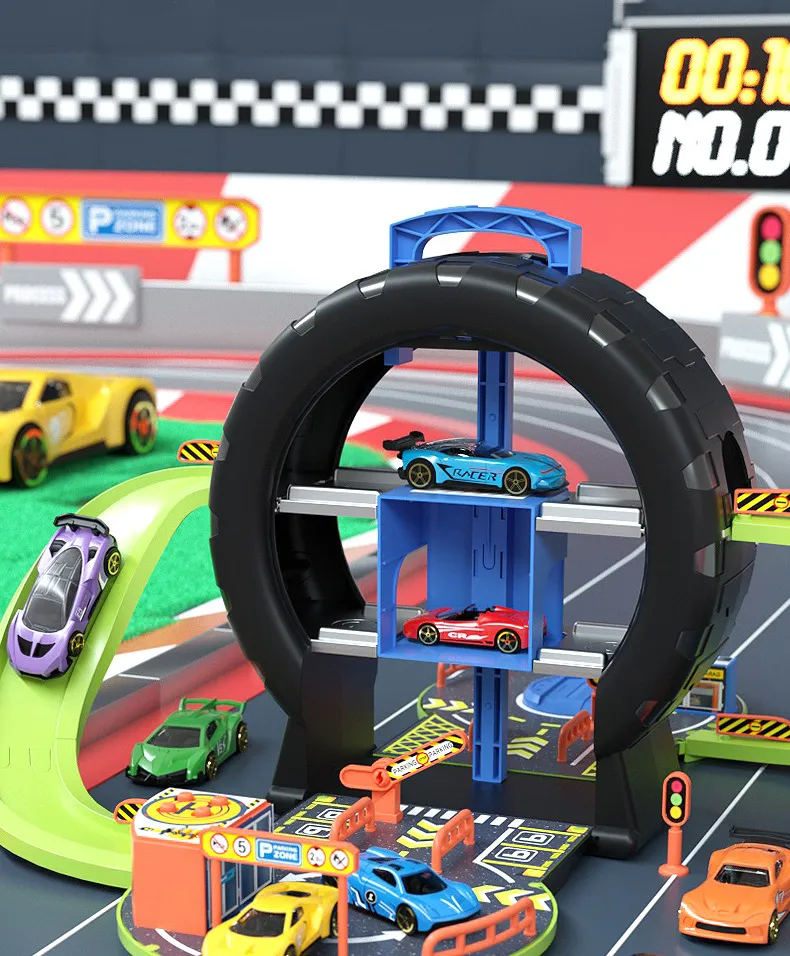 The Tire Track Parking Lot is designed for interactive play, making it perfect for group play or family time. Children can take turns parking the cars, racing each other, or engaging in collaborative play scenarios. This encourages teamwork, sharing, and communication as they learn how to play together, follow rules, and engage in social interactions. It’s also a great way to foster bonding between siblings or friends, helping children learn social skills while enjoying a shared activity.