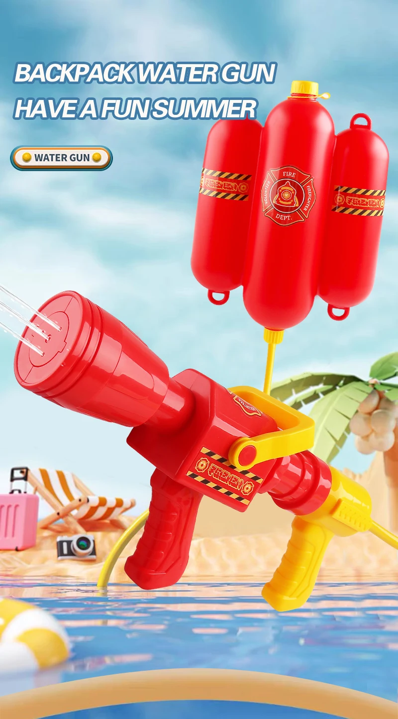 Children's toy backpack water gun, firefighter backpack-style water gun, beach water fight toy, pull-out water gun, 2000CC large