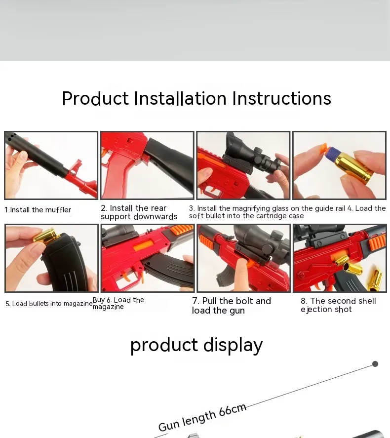 Loading and shooting the soft foam bullets is simple and straightforward, making it easy for kids to operate. Whether it's a backyard battle, a target shooting game, or an indoor adventure, this toy encourages physical activity and teamwork. The soft bullets are reusable, ensuring long-lasting play without the need for constant replacements. Parents can rest assured knowing that their children are playing with a toy designed to offer maximum fun with minimal risk.
