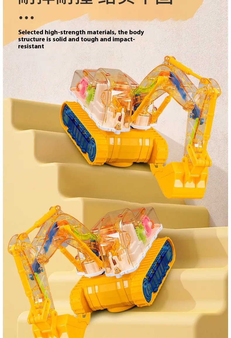 Children's Toy Transparent Mechanical Gear Excavator Movable Joint Light Toy