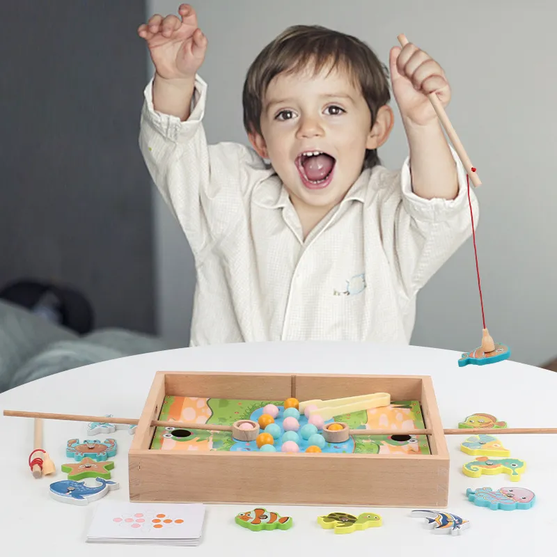 wooden box*1+game board*1+clip*1+wooden ball*18+fishing rod*2+set of rod*2+game card*12+sea animals*12