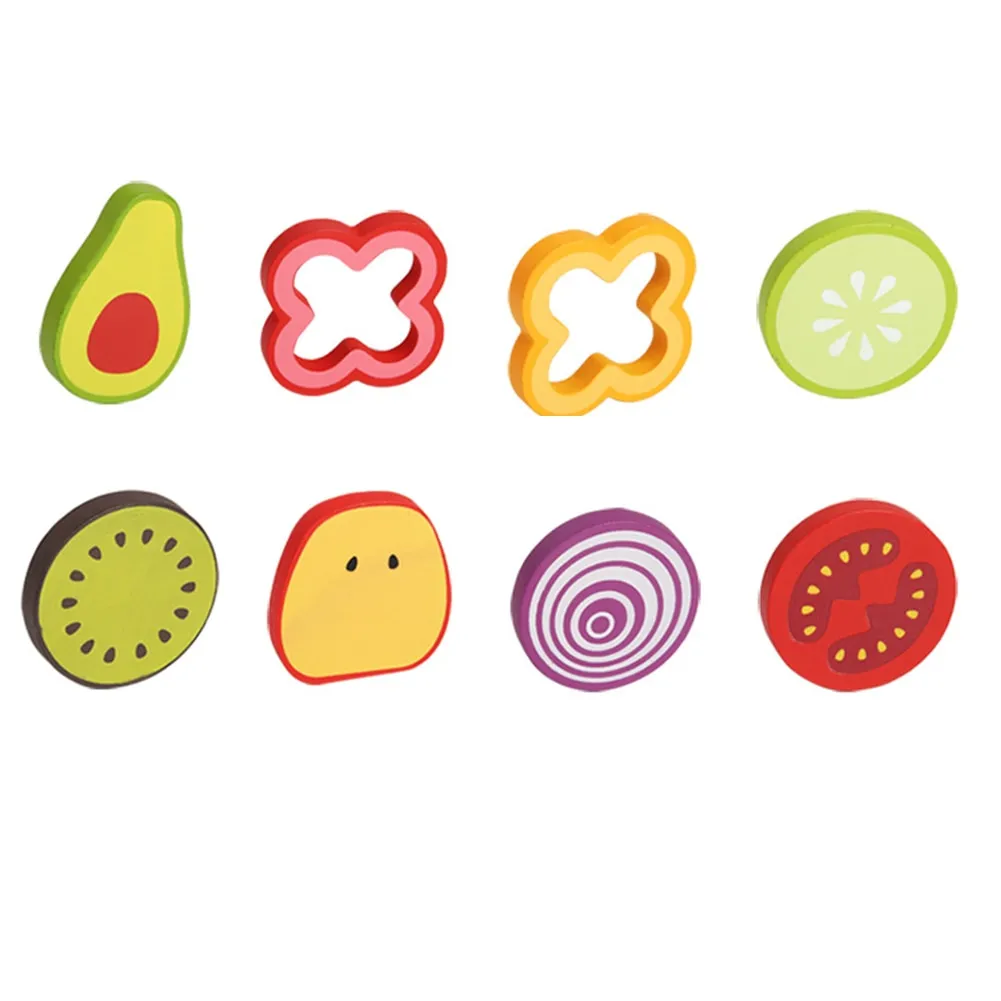 - Wooden food items (vegetables, fruits, bread, etc.)