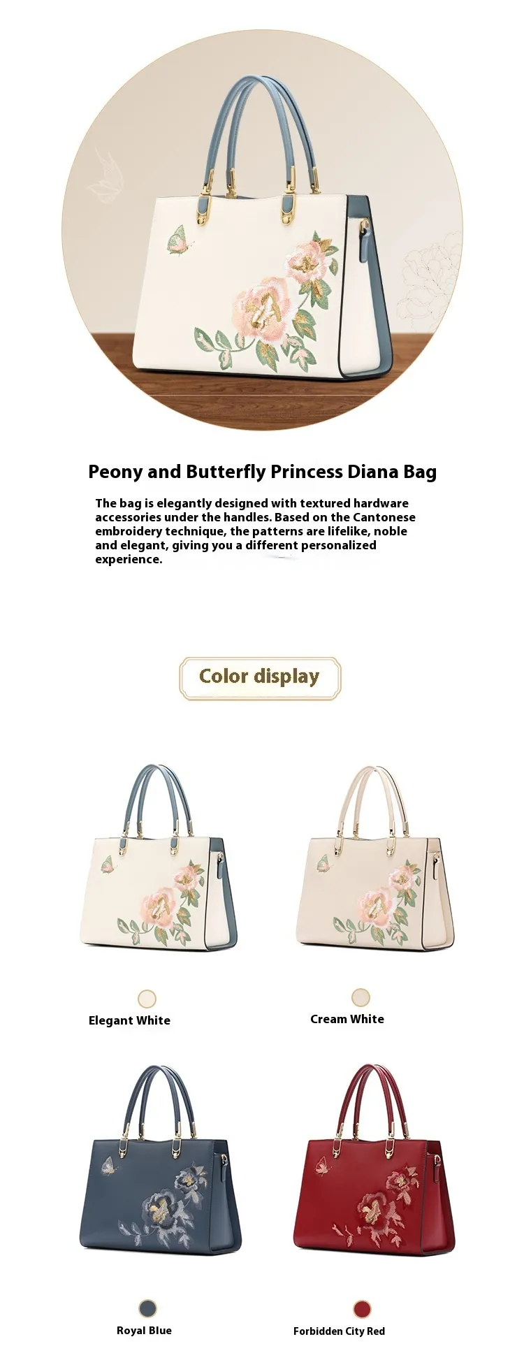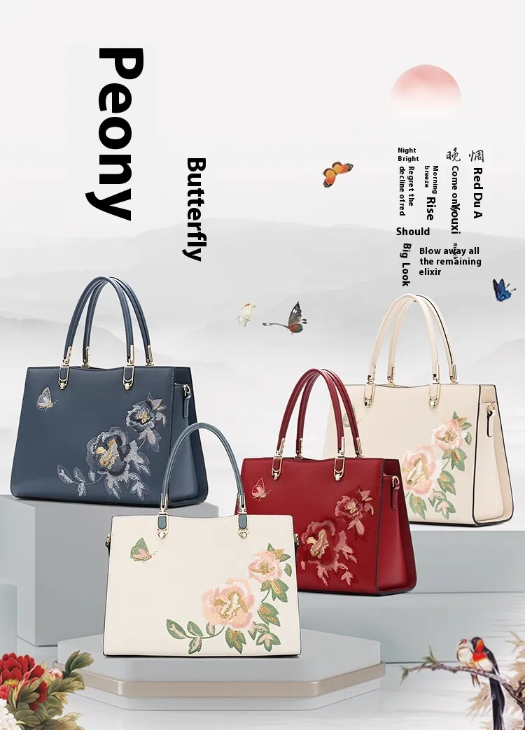 Why Choose the Chinese Peony Butterfly Leather Graceful and Fashionable Large Capacity Embroidery Texture Diana Bag?