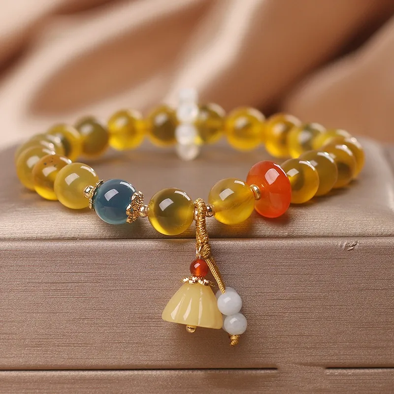 How to Style the Chinese Retro Natural Stone Yellow Sugar Heart Agate Bracelet