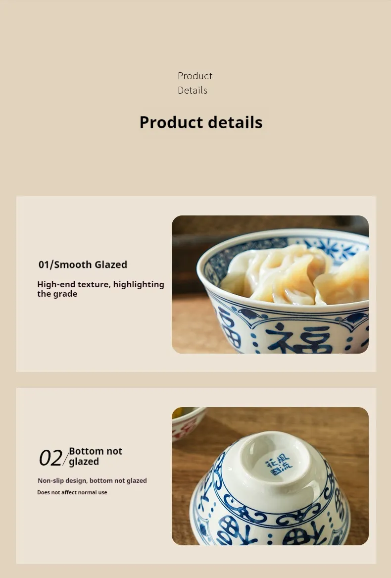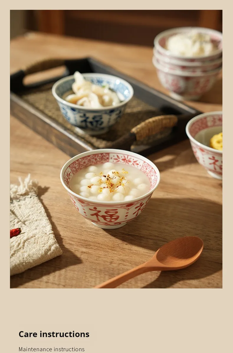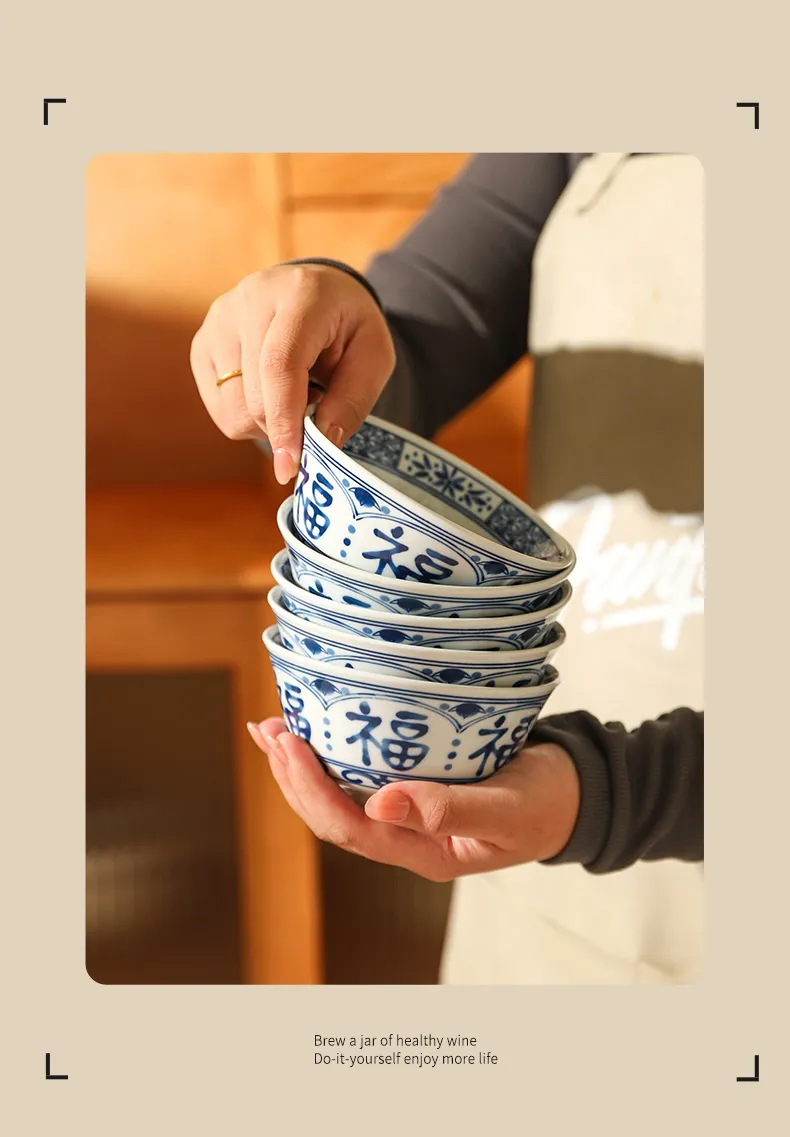 Chinese Style Ceramic Bowl Home Rice Bowl Set