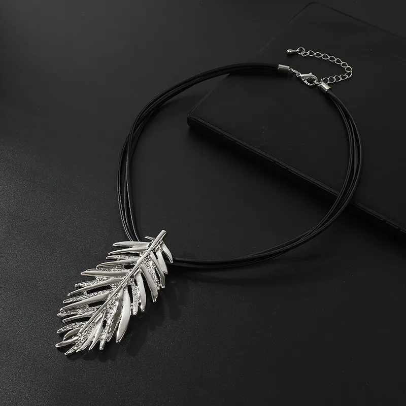 modern designs with a touch of elegance. Featuring a stylized leaf pendant and choker