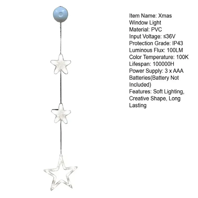 Christmas 3pcs LED Light Star Xmas Tree Hanging Sucker Lamp Window Ornaments Decoration For Home Xmas Navidad New Year Decor Christmas Decorations