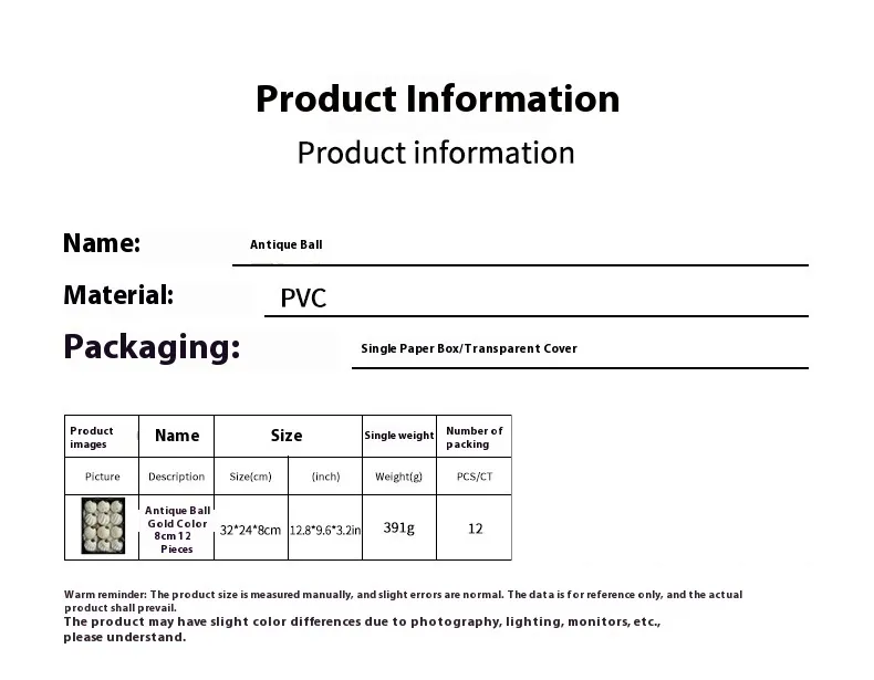 Color: antique ball Gold 8 cm12, antique ball silver 8 cm12, antique ball Green 8 cm12, antique ball Black 8 cm12