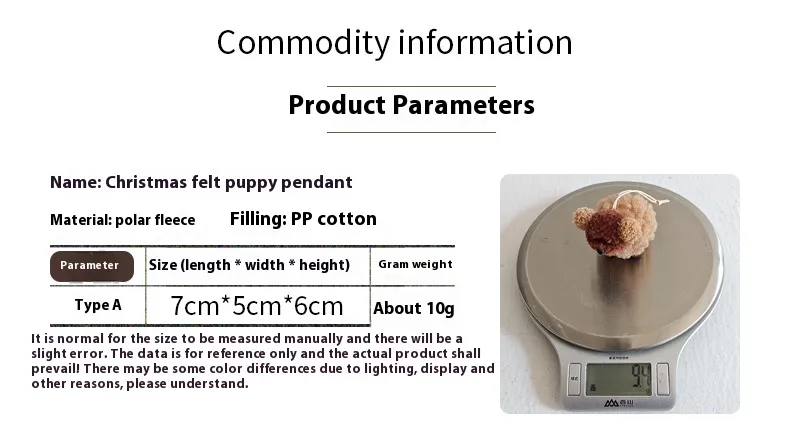 Key Features of the Christmas Decoration Plush Felt Puppy Pendant