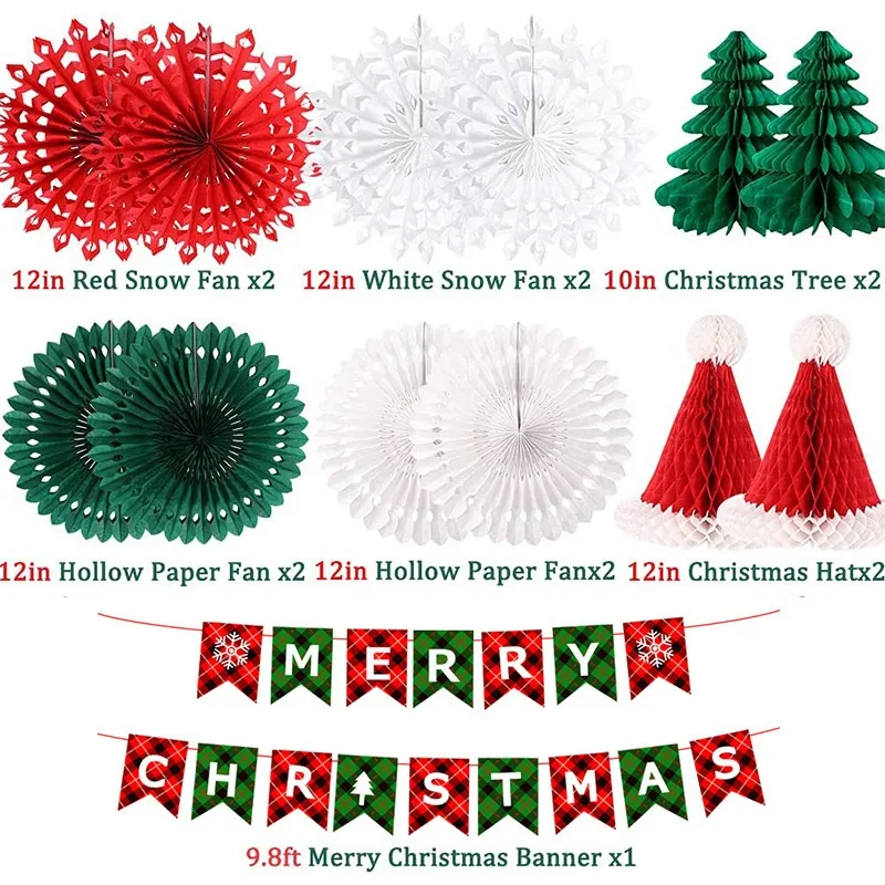 Description – Christmas Honeycomb Ball Suit Christmas Hat Pendant Christmas Letter Hanging Flag Spiral Latte Art