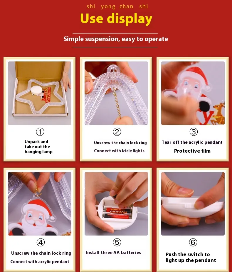 Christmas Pendant Decoration Christmas Atmosphere Led Lights Led Christmas Star Light Decoration For Window Door For Holiday
