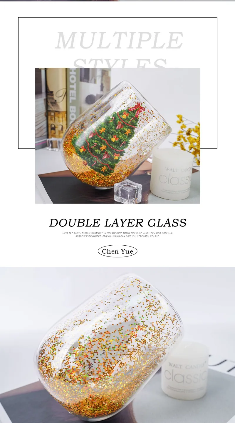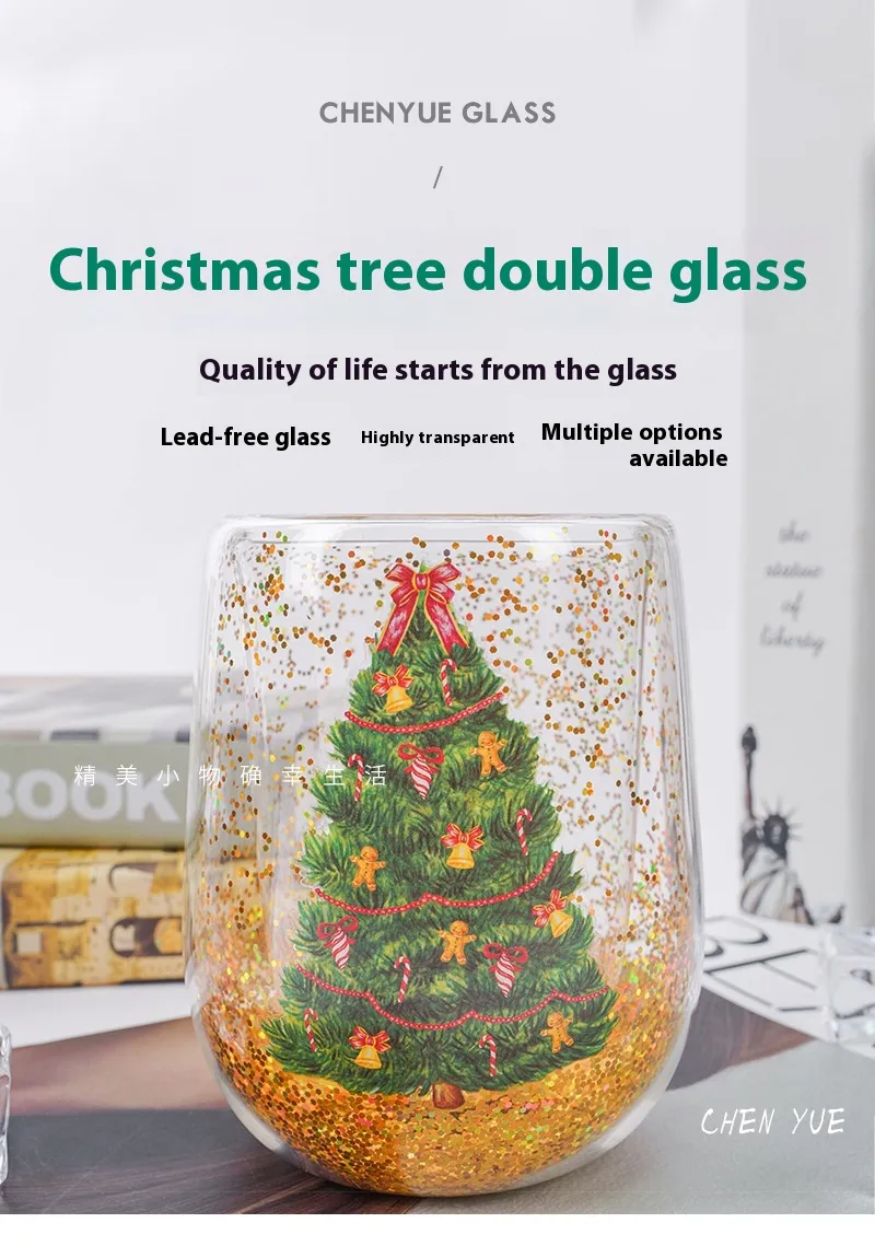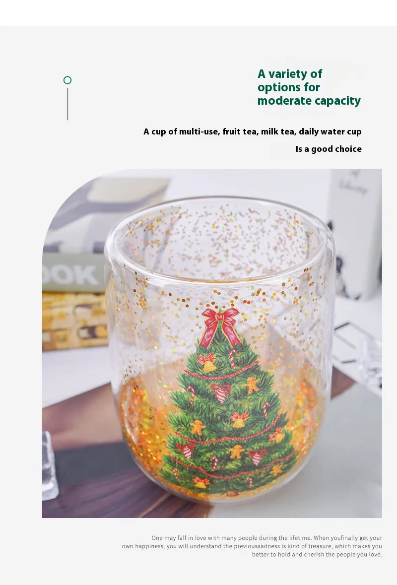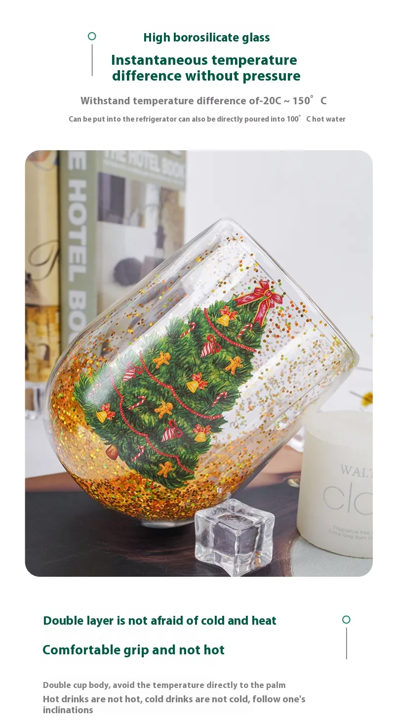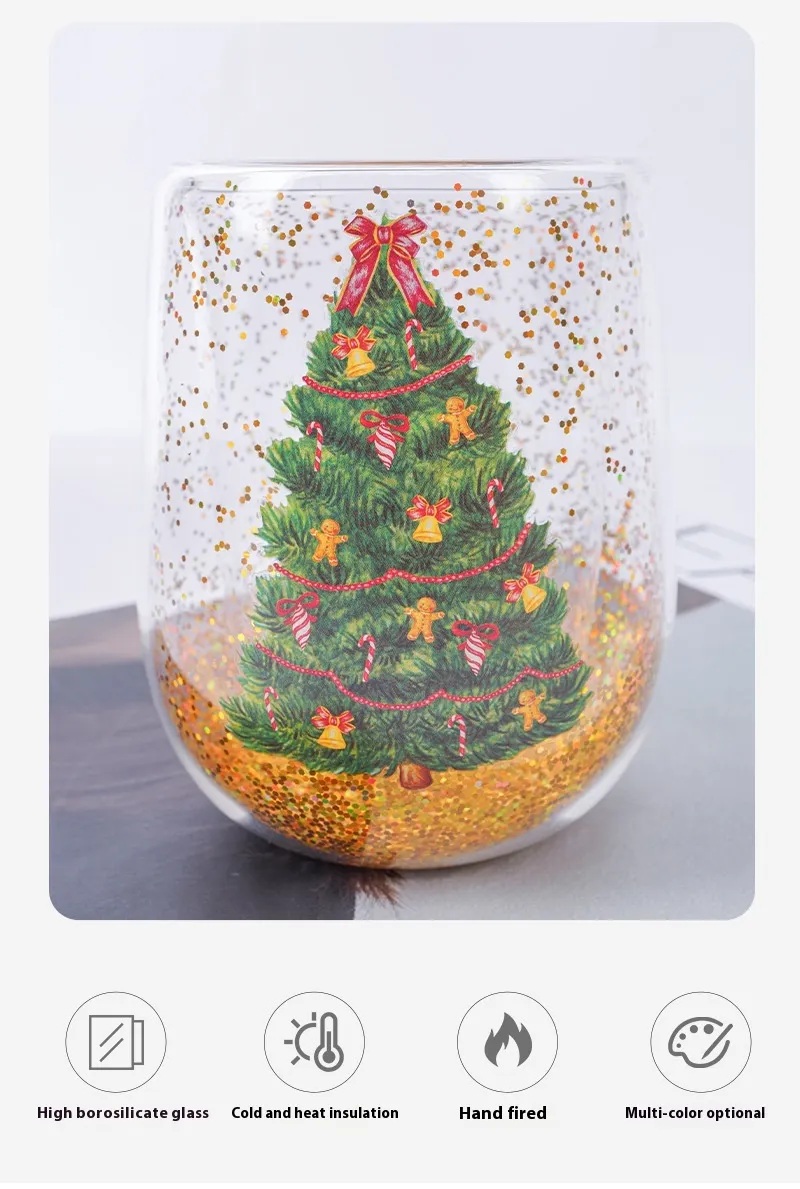 Christmas Tree Cups Heat Resistant Double Layer Flowing Sequins Christmas Cup Household Handwork Cartoon Christmas Trees Tumbler Kitchen Gadgets