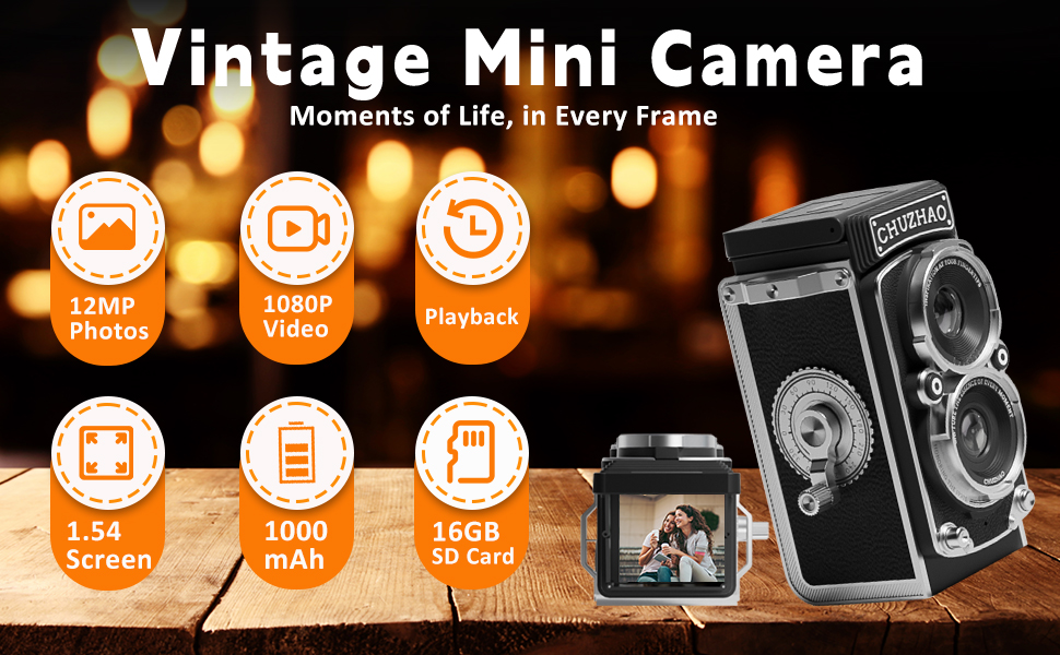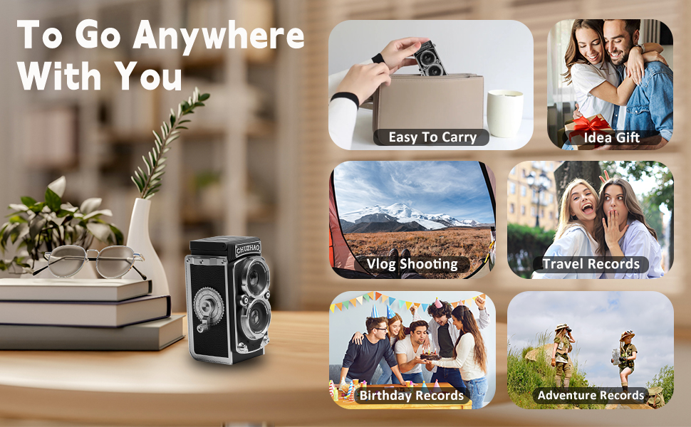 - GREAT GIFT IDEA: Packed in an elegant gift box, the CHUZHAO retro snap camera makes an ideal gift for birthdays, holidays, or special occasions. Instantly ready for use, our mini retro camera iIncludes a 16GB SD card, stylish lanyard, and Type-C cable