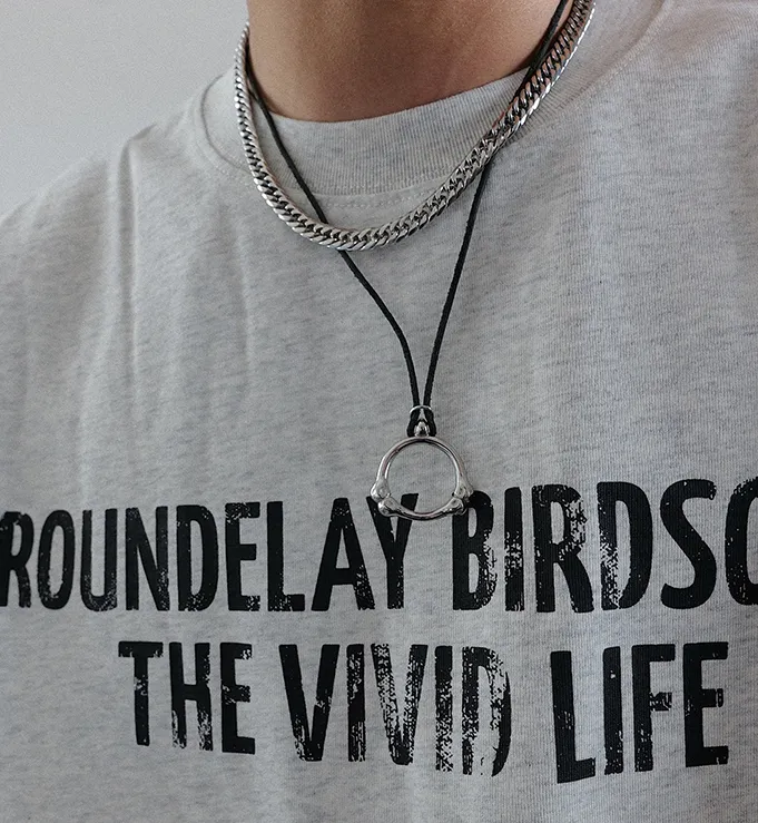 Circular Bone Pendant Leather Rope Necklace