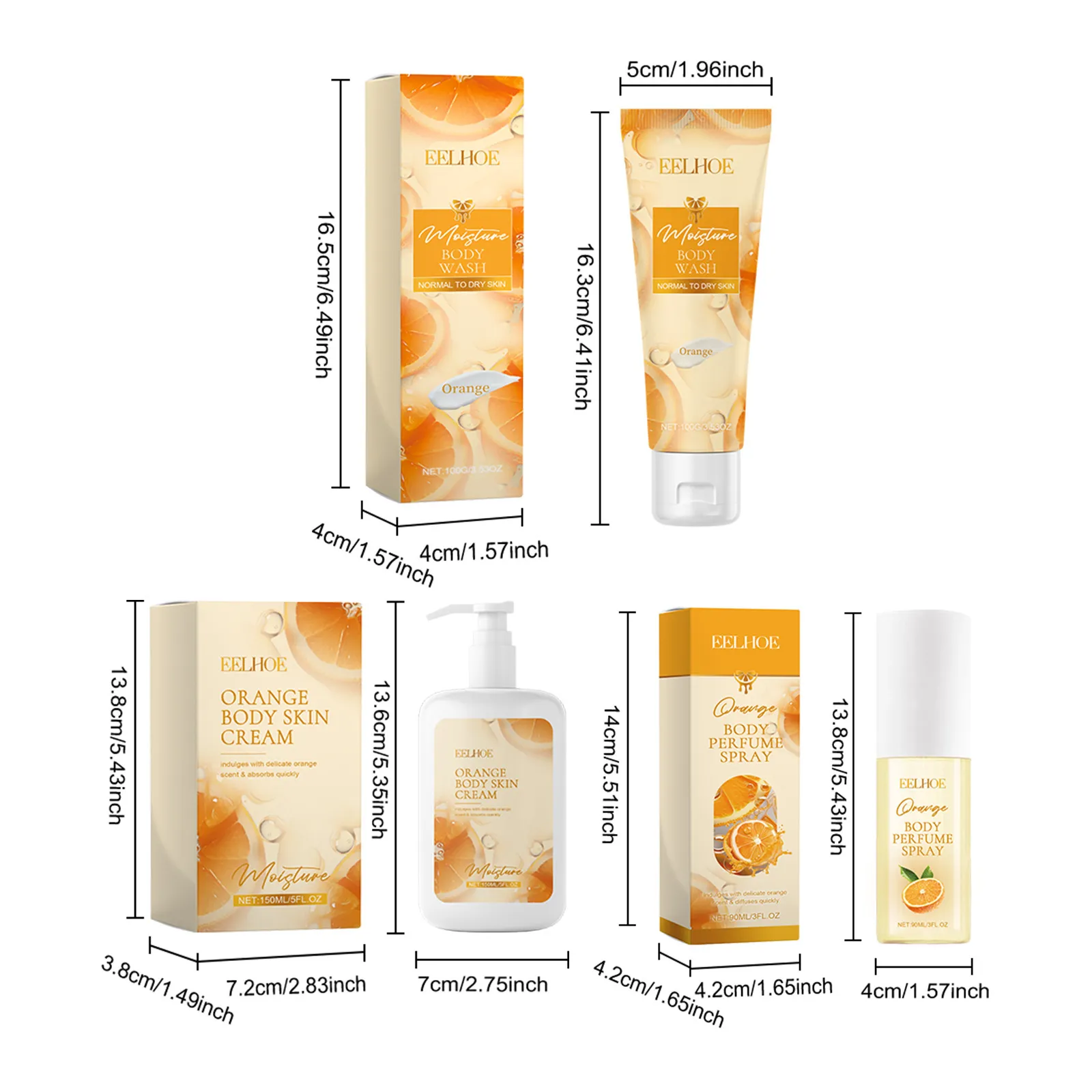 Color classification: fragrant citrus perfume spray, fragrant citrus moisturizing body lotion, fragrant citrus moisturizing shower gel