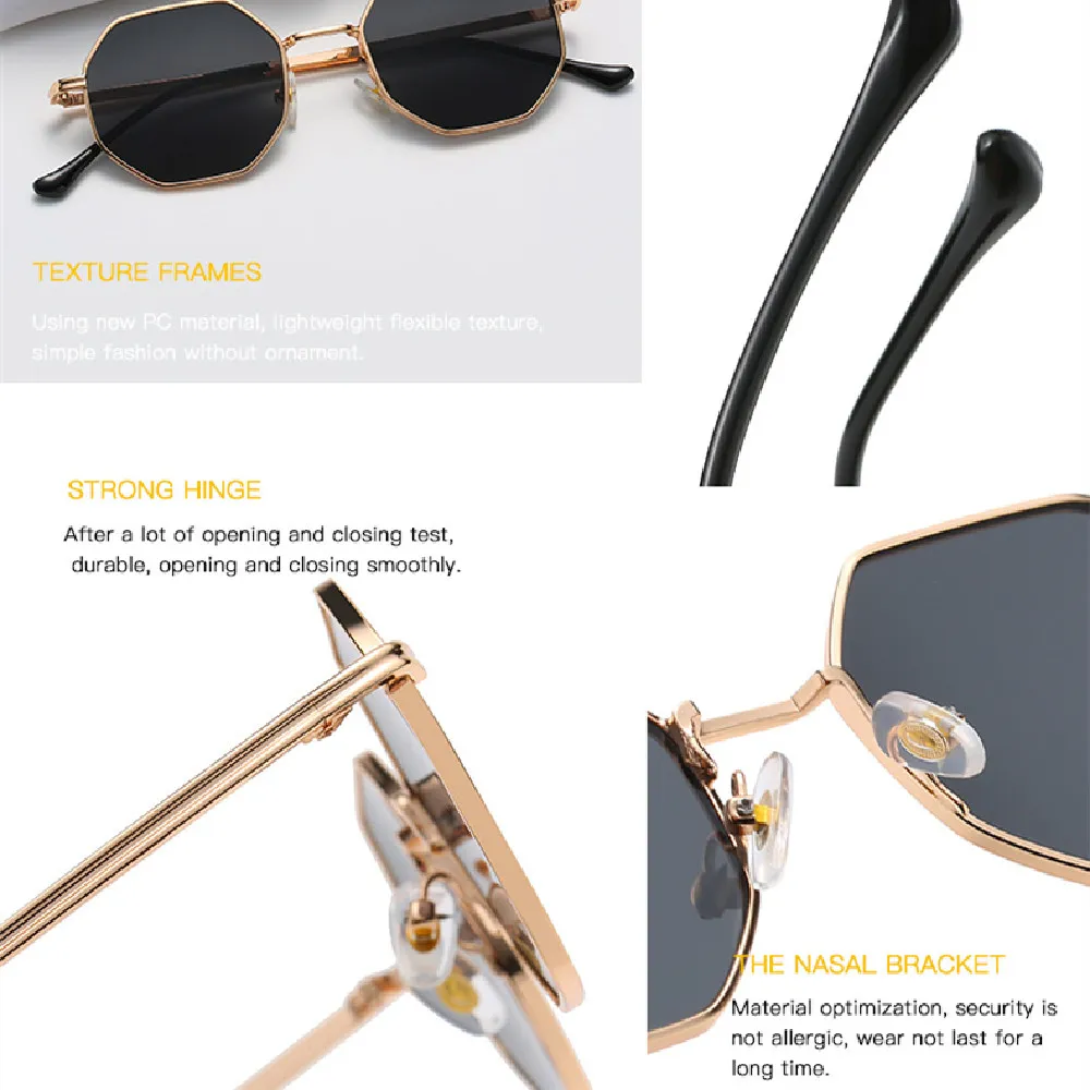 The Classic Vintage Metal Multilateral Sunglasses complement a variety of styles and settings:
