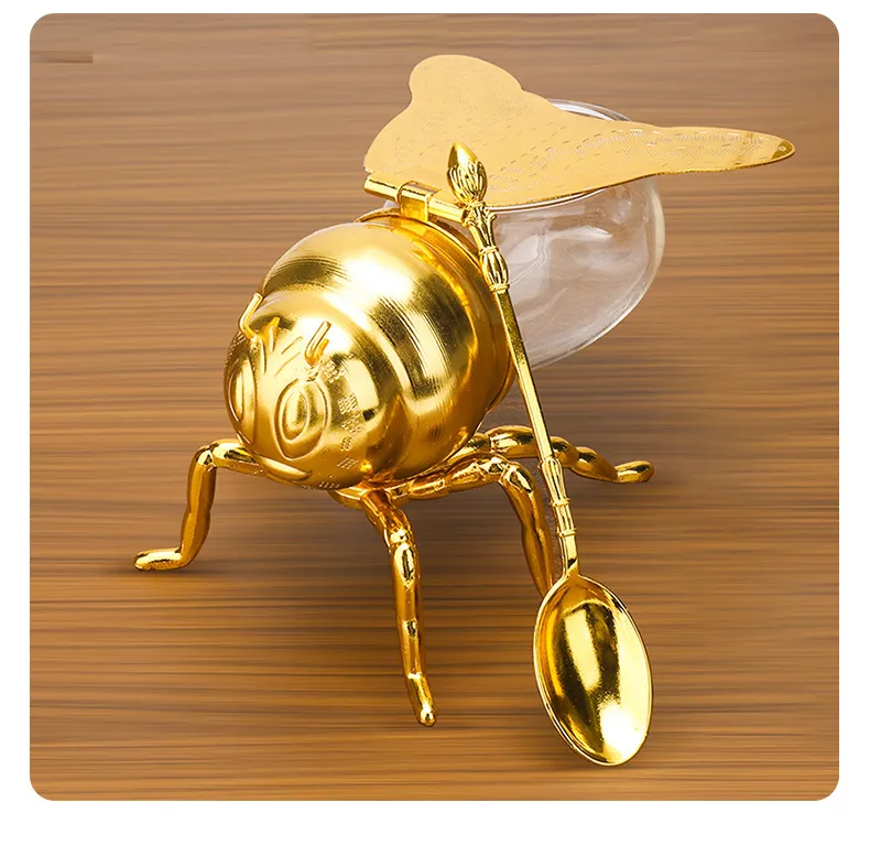 Classical Style Bee Sugar Bowl Seasoning Jar With Spoon Metal Crafts Kitchen Gadgets