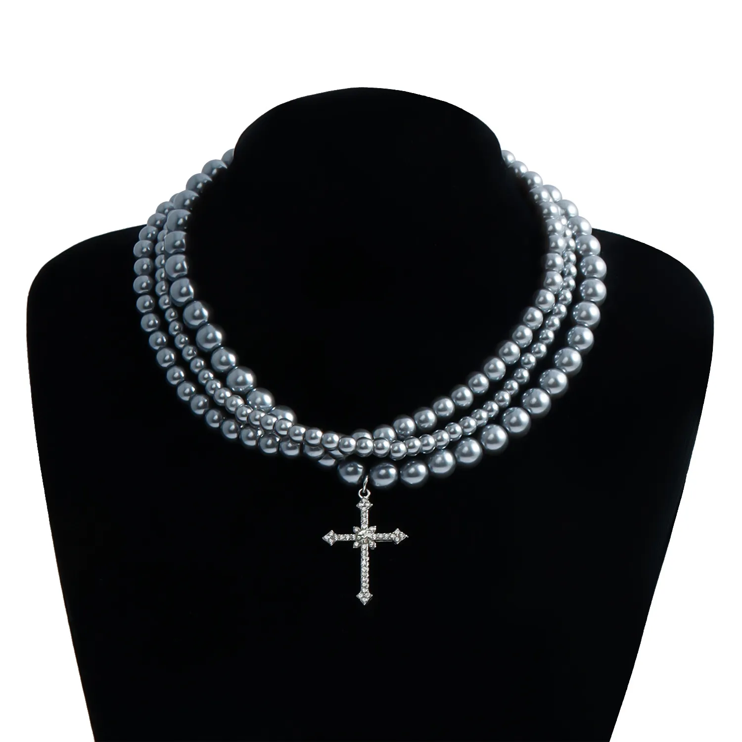 Order Your Clavicle Chain Painted Glass Beaded Diamond Cross Multi-Layer Necklace Today