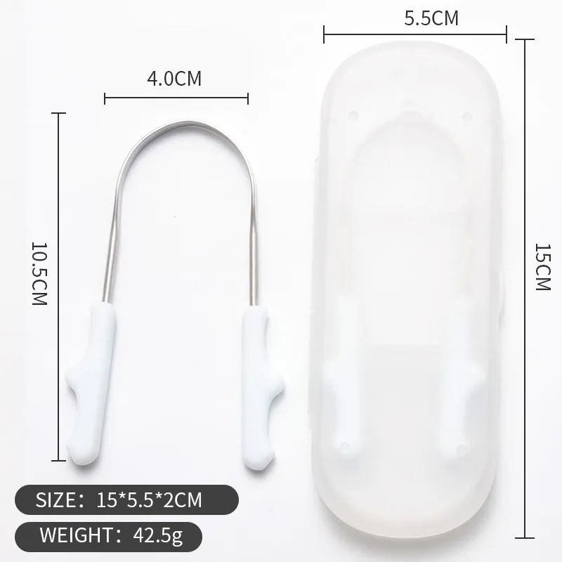 Featuring a comfortable handle and a curved design, the scraper allows for precise and gentle cleaning, helping to reduce bad breath and improve overall oral health. Its compact size makes it ideal for travel, ensuring you can maintain your oral hygiene regimen wherever you go.