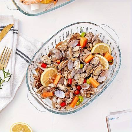 The Clear Glass Oval Casserole with Lid and Handles is a must-have kitchen essential designed to make cooking and serving a breeze. Whether you’re preparing fish, salads, pasta, or any other dish, this casserole is perfect for everyday cooking. With its microwave, oven, and dishwasher-safe features, it's an all-around convenient and reliable cookware solution for modern kitchens. Designed for ease of use, the casserole comes with a lid and handles for safe and easy transport from the oven to the table, making it ideal for family meals or gatherings.