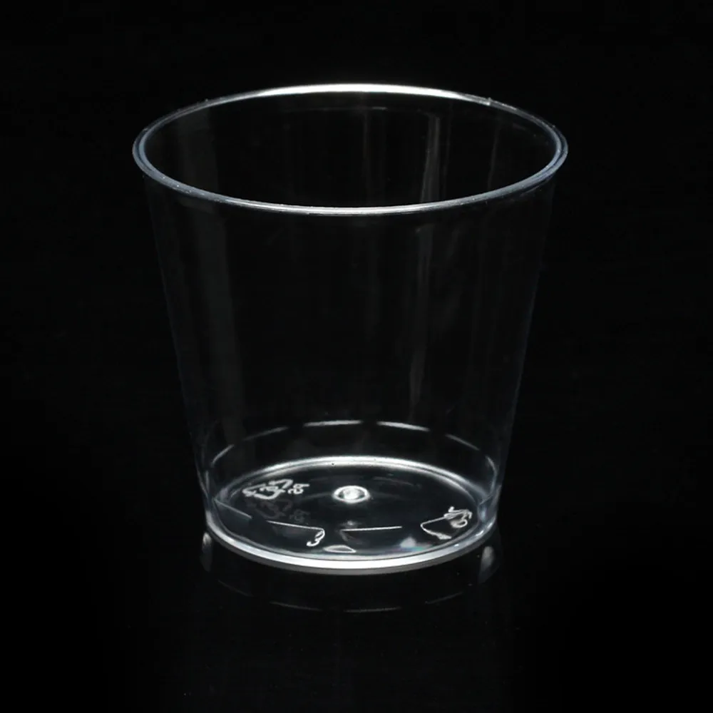 Mini clear plastic cups are perfect for sampling drinks, serving small portions of beverages, or offering guests a taste test of different