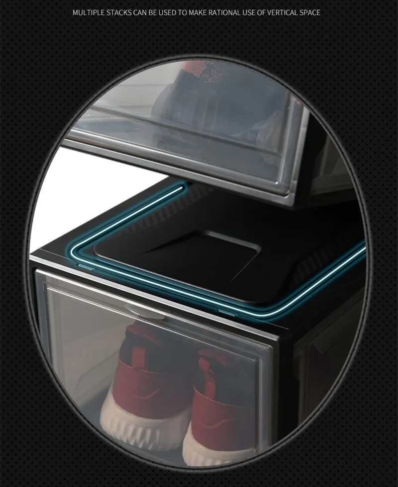 The box structure is designed for easy stacking, helping maximise vertical space in closets and rooms. Shoes stay separated and protected from dust, moisture, and accidental scuffs. Ventilation features (where applicable) support airflow to help keep shoes fresh during storage.