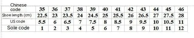 Size: 35, 36, 37, 38, 39, 40, 41, 42, 43, 44, 45, 46, 47