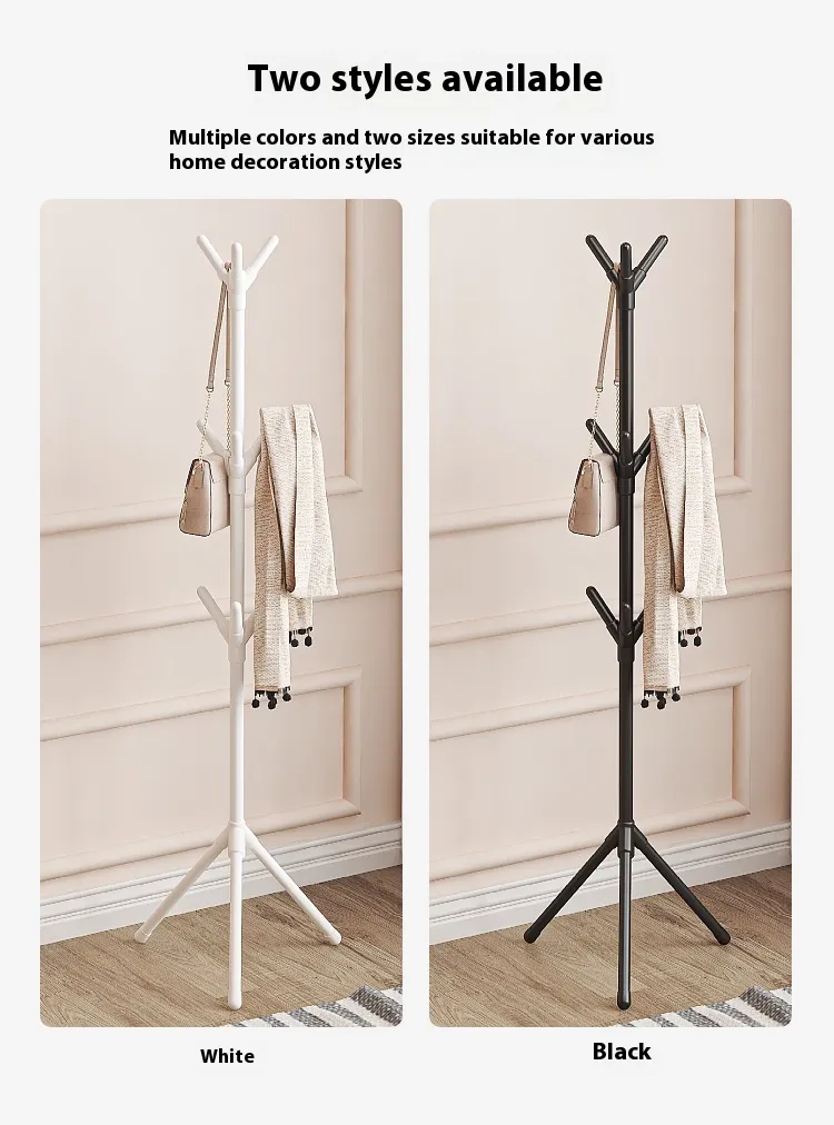 A coat rack is a piece of furniture designed to hold coats, jackets, hats, umbrellas, and bags. Coat racks come in various designs, from wall-mounted units to freestanding models. They typically feature hooks or pegs for hanging items and can include additional shelves for storing smaller items. Depending on the design, coat racks can be placed in entryways, hallways, bedrooms, or even offices.