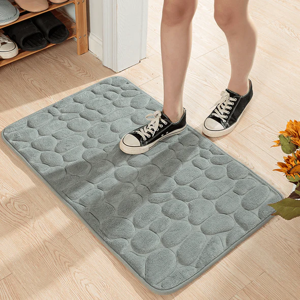 our new Cobblestone Bathroom Mat, you never have to worry about slipping when coming out of your shower! The mat is