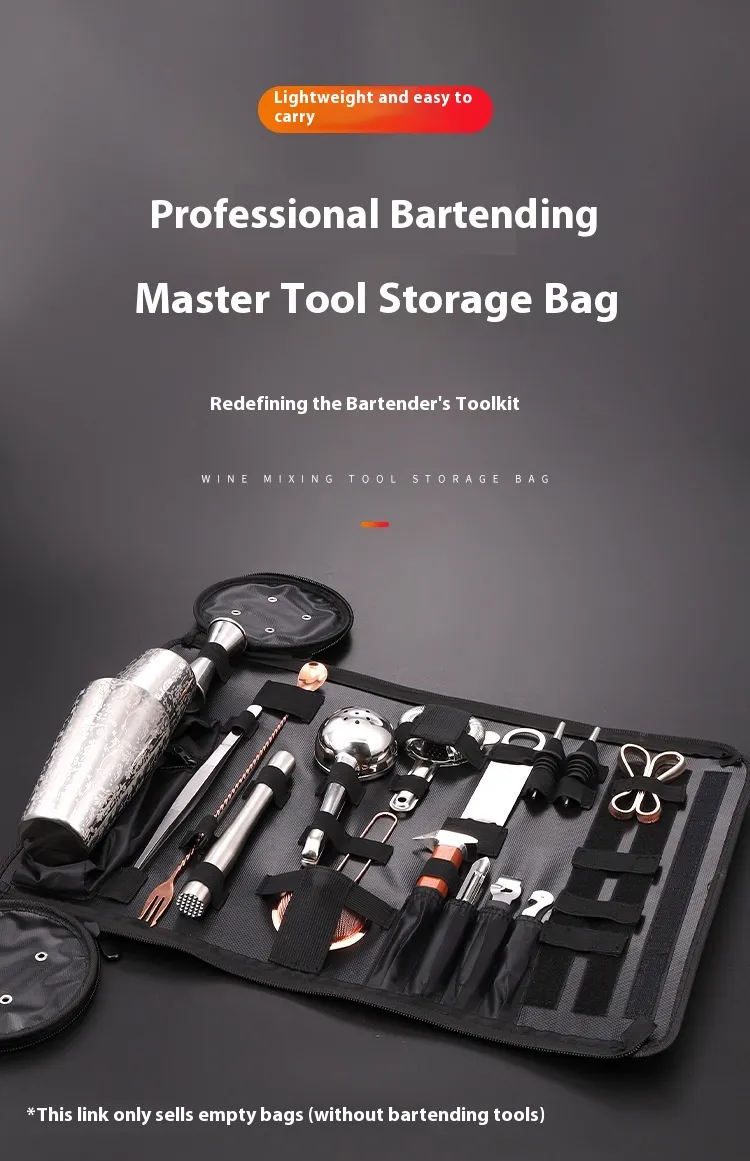 Specifically designed to accommodate cocktail shakers and bar tools in a structured way.