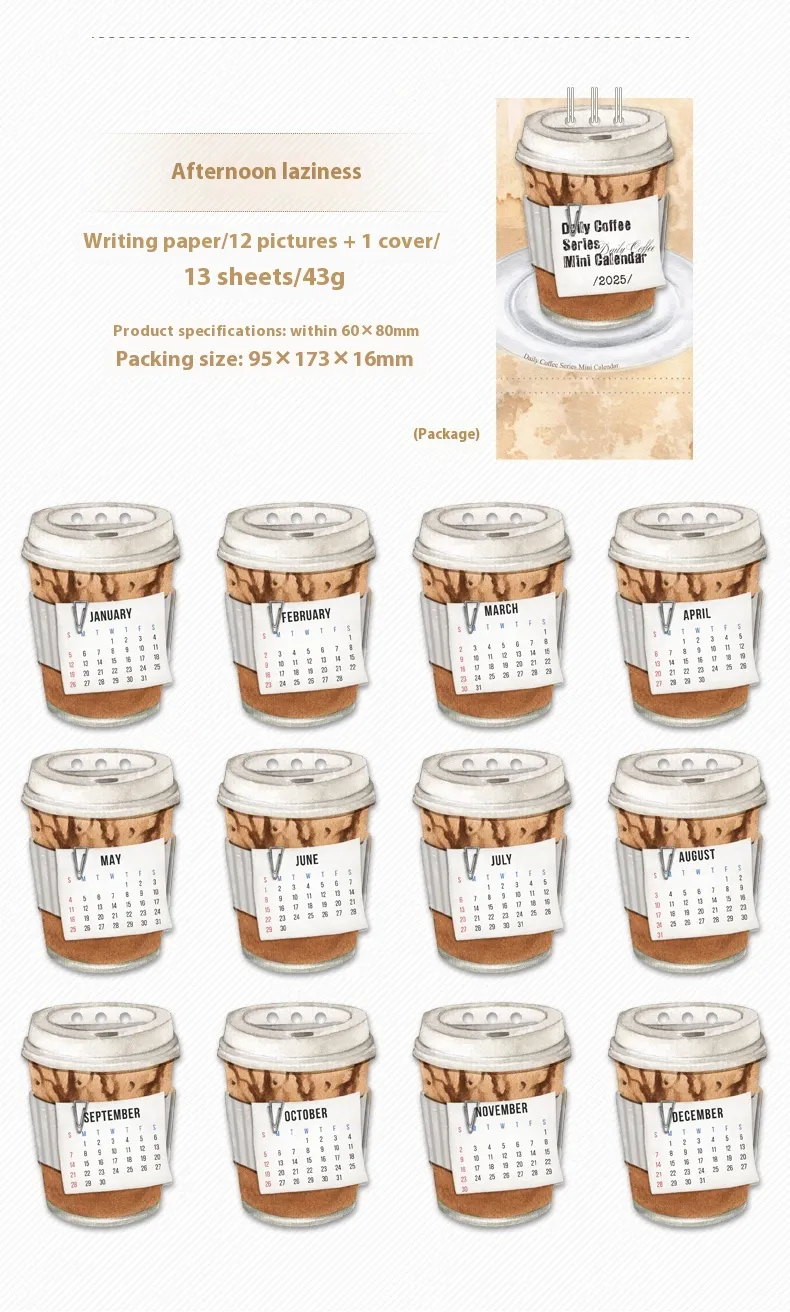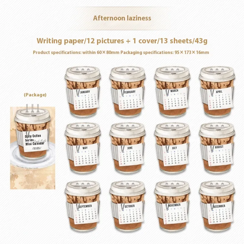 2025.1-12, mini afternoon Lazy desk calendar 2025.1-12, mini daily coffee series mini desk calendar four models, mini life Seamless desk