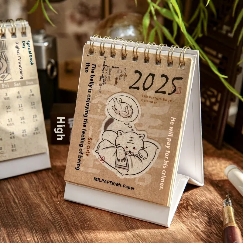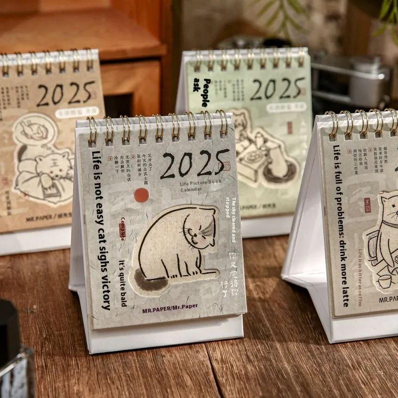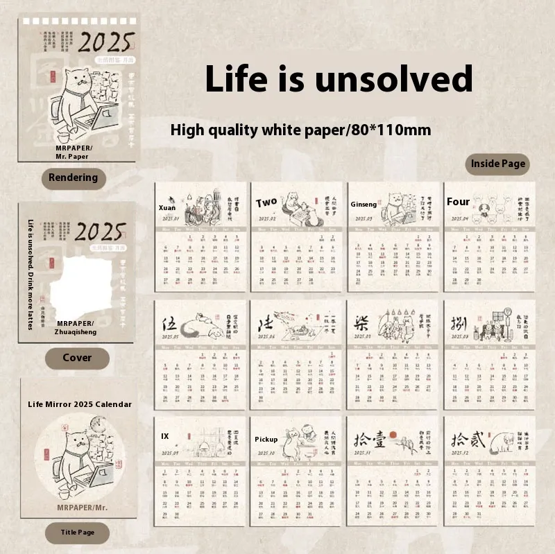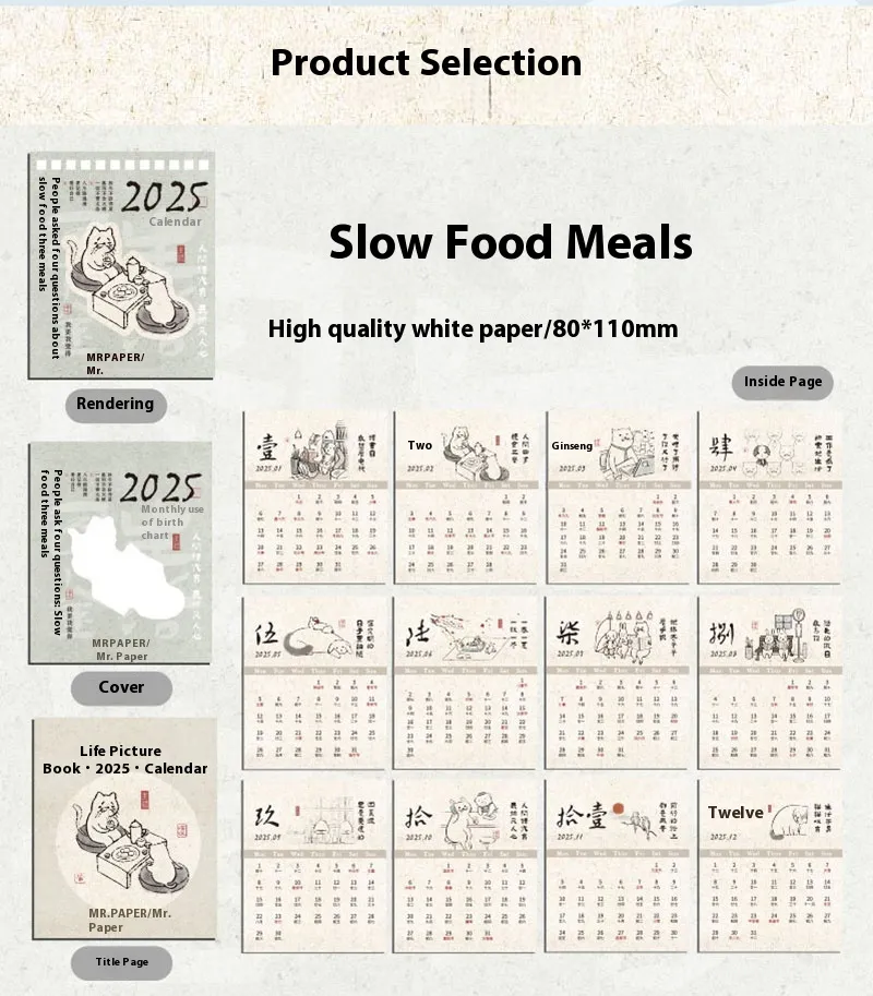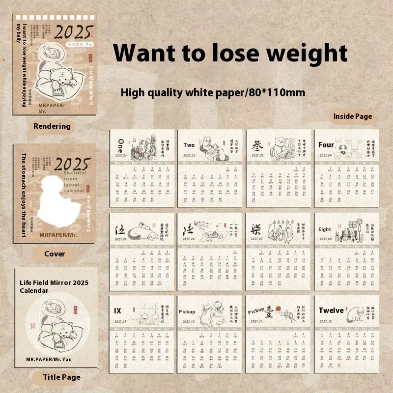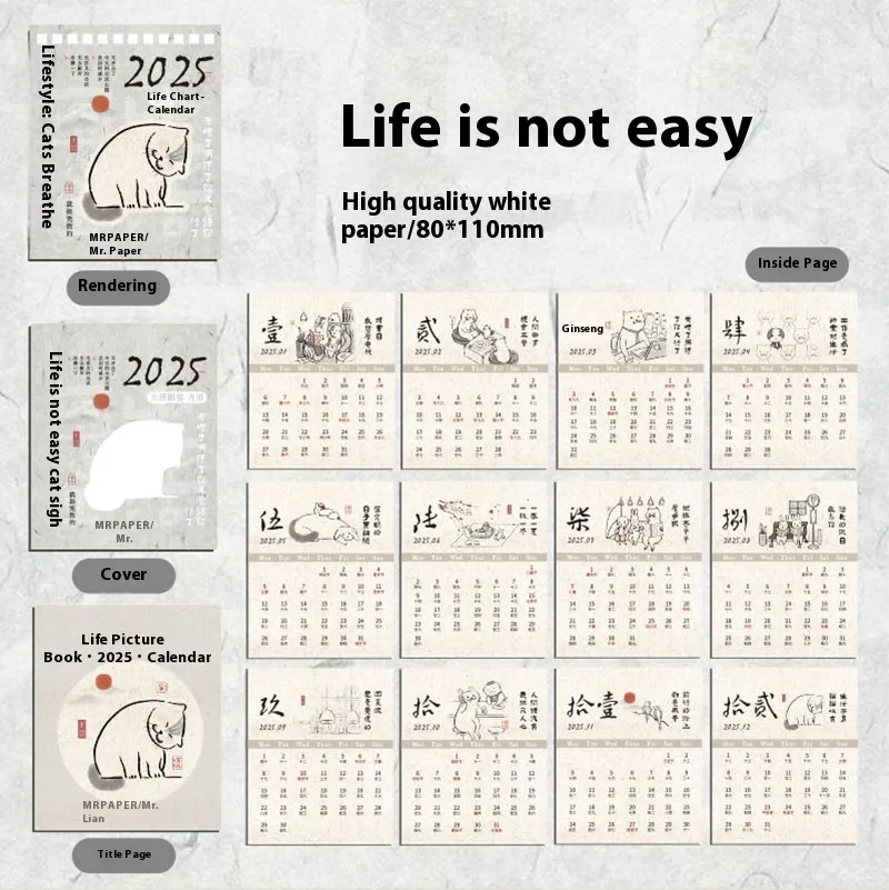 calendar 2025.1-12, mini slow meal three meals desk calendar 2025.1-12, mini life is not easy desk calendar 2025.1-12, mini thinking thin