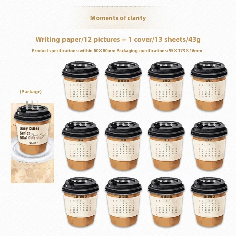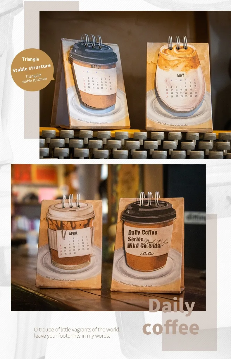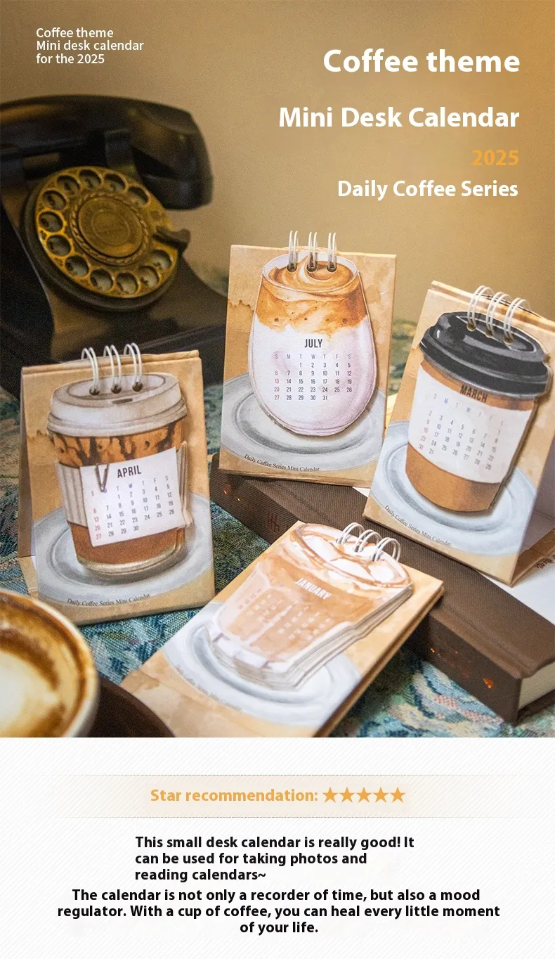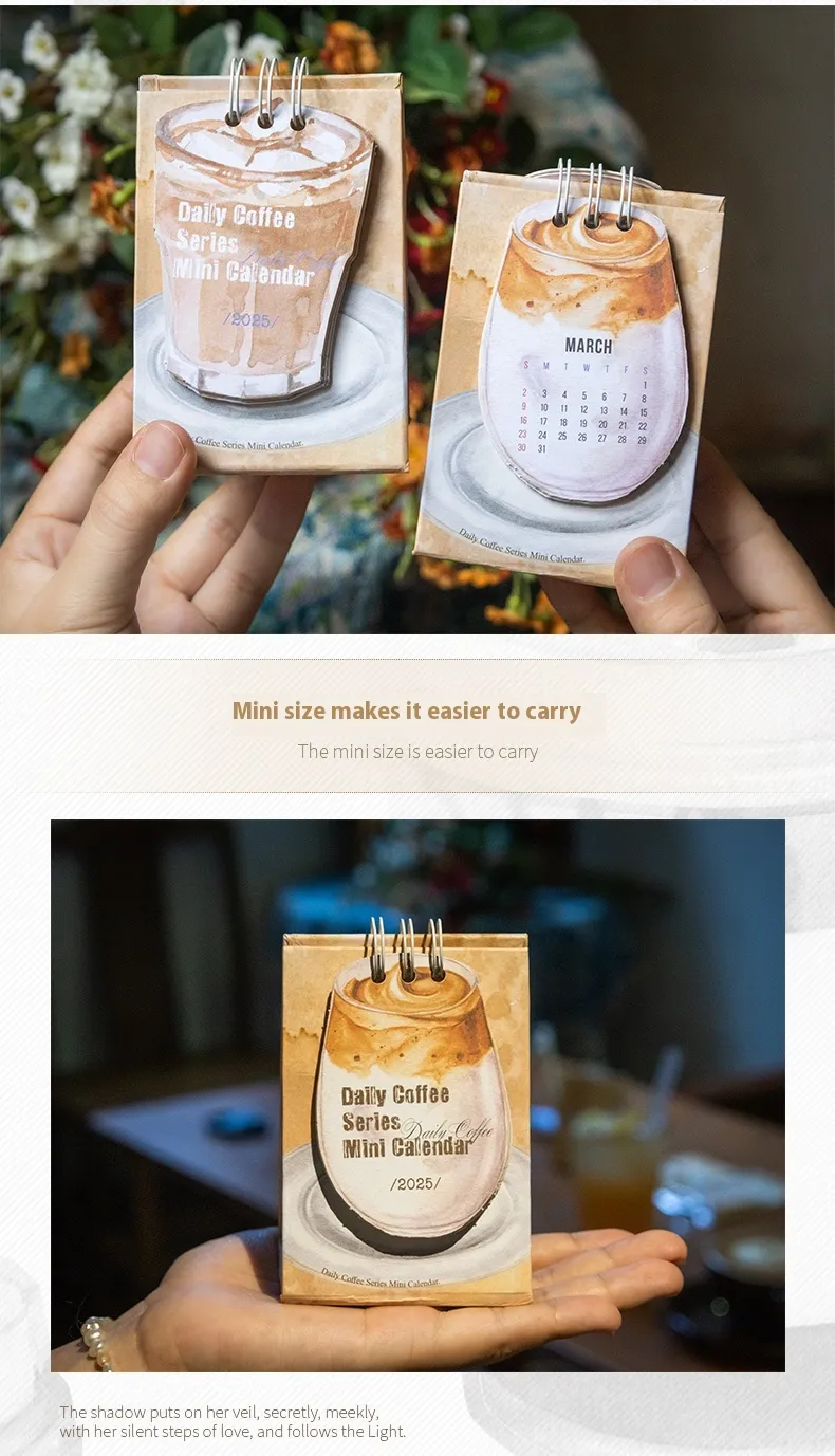 The Coffee Mini Small Desk Calendar is designed with space in mind. Its miniature size fits perfectly on any desk, countertop, or work surface, making it ideal for those who have limited space but still want to keep track of important dates. Its sleek design adds a touch of personality to your workspace without overwhelming it.