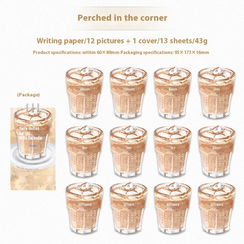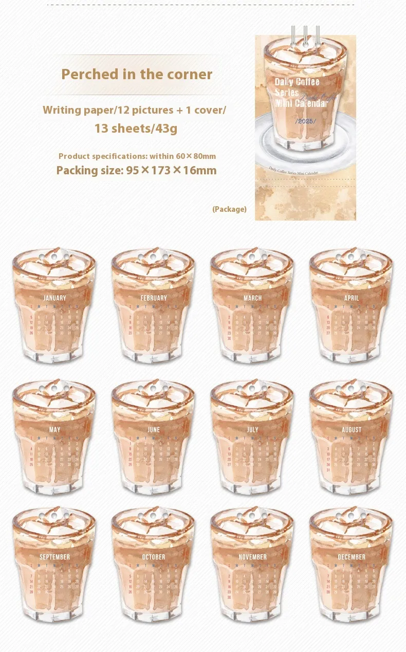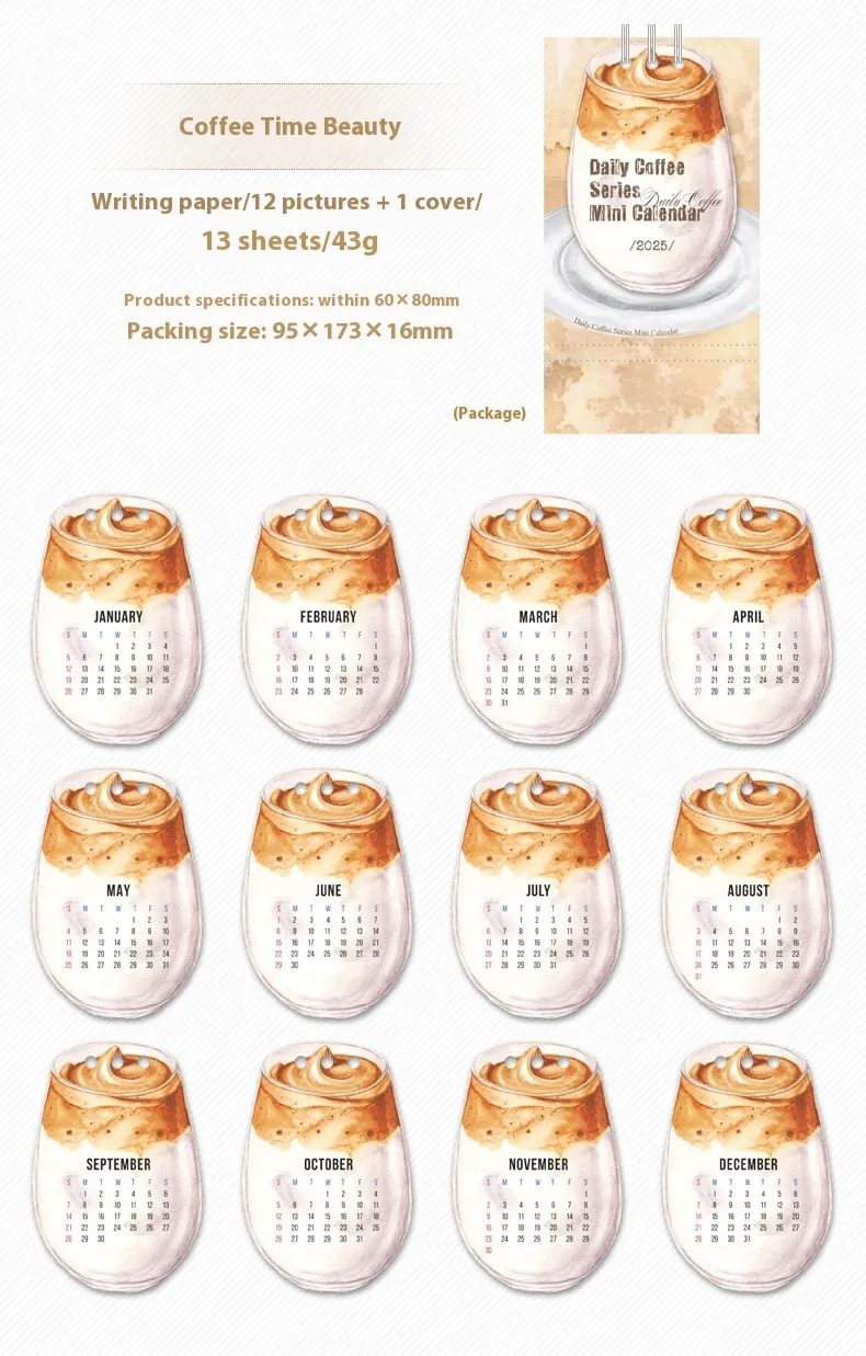 Specifications: Mini Coffee Time beauty desk calendar 2025.1-12, mini awake time desk calendar 2025.1-12, mini corner perching desk calendar