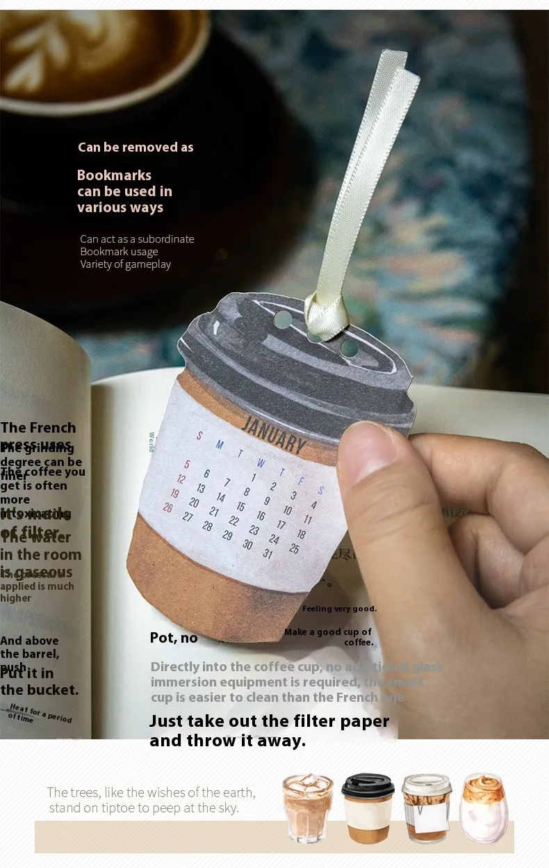 Each page of the calendar features a coffee-inspired design, complete with vibrant images, quotes, and illustrations that celebrate your favorite brew. The unique designs offer a delightful surprise every day, keeping you engaged and motivated while you work, study, or relax. It's the perfect way to keep your day organized with a warm, comforting coffee touch.