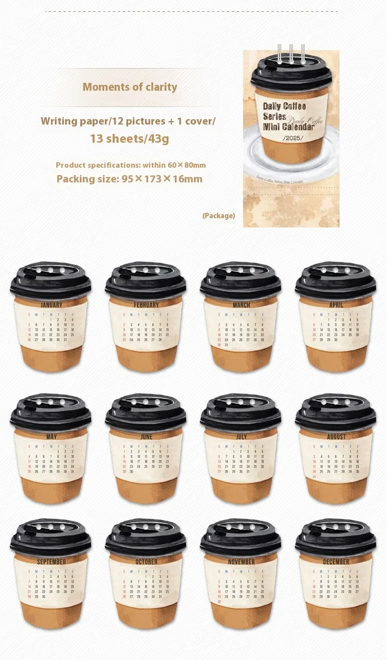 Looking for a perfect gift for the coffee lover in your life? The Coffee Mini Small Desk Calendar makes an ideal gift for birthdays, holidays, or special occasions. It’s both practical and thoughtful, offering daily inspiration along with a touch of whimsy. Your friends, family, or colleagues will love having a coffee-themed calendar to brighten their day.