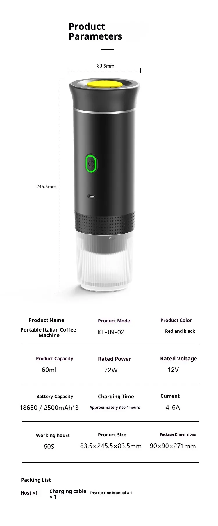 【Package Include】Coffee machine mainframe+colour box package+USB cable+Manual
