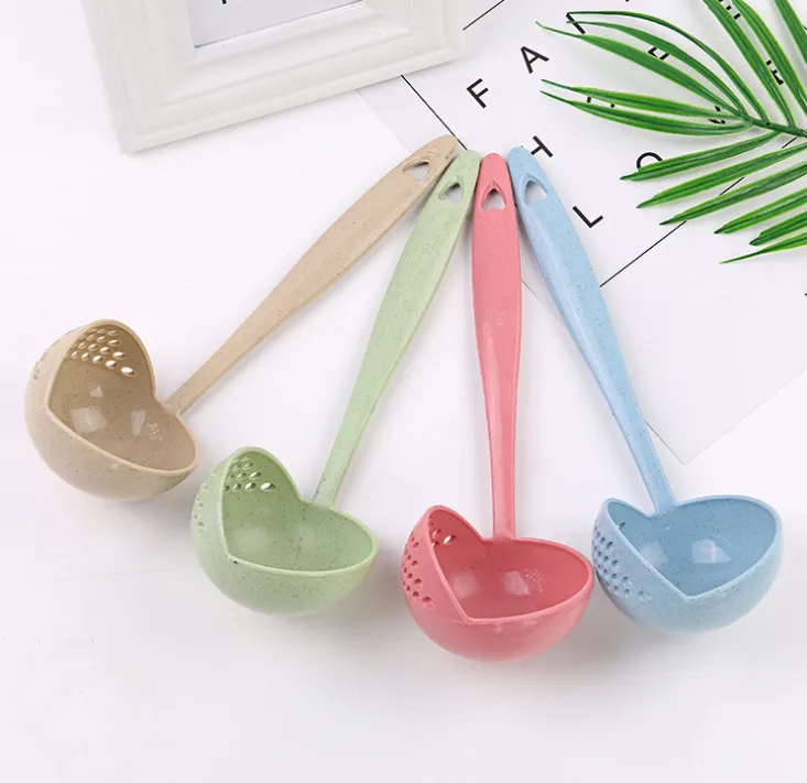 Colander With Wheat Straw Long Handle Dual-purpose Soup Spoon