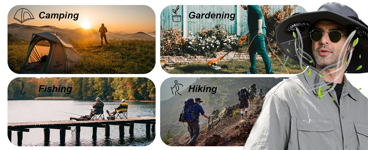 - Wide Use Occasion: Men fishing hat with fan can be worn in your daily life, and also suitable for many outdoor activities, such as mountaineering, gardening, golf, farming, fishing, cycling, travel, and more, which can maintain you cool in the hot summer and let you have a pleasant holiday