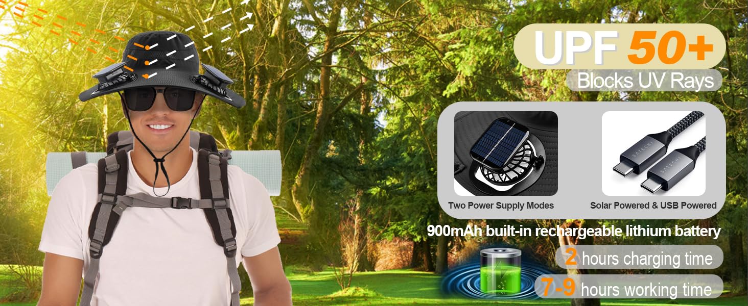 Eco-Friendly: Solar-powered fans reduce the need for disposable batteries, making this hat an environmentally friendly