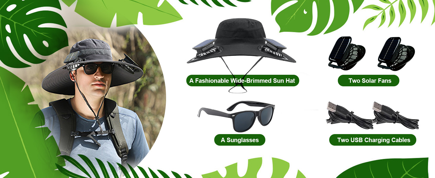 - Wide Brim Hat with Fan: You will get 1 x wide brim sun hat, which is built-in 2 x solar fans, and 2 x USB cables. You can hang the outdoor fishing sun cap around your head and take it everywhere