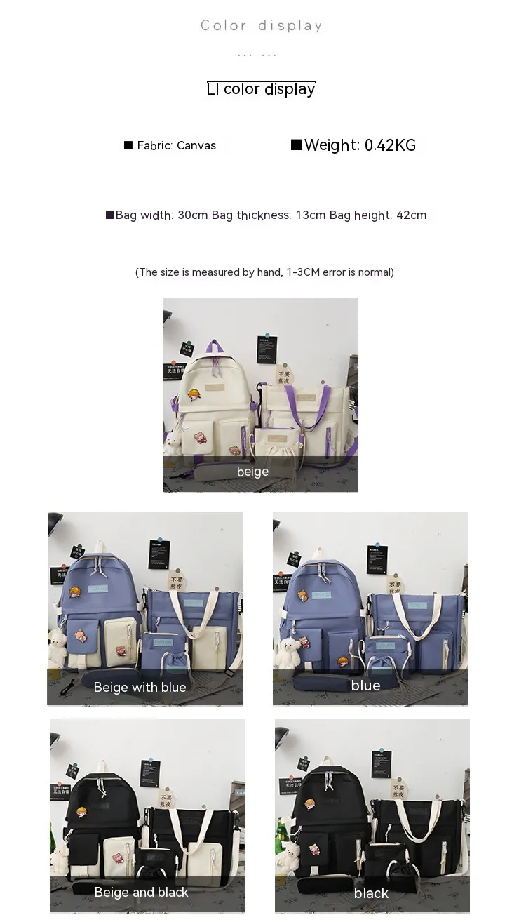 College Students' Five-Piece Contrast Color Canvas Backpack – Stylish and Functional for Everyday Use
