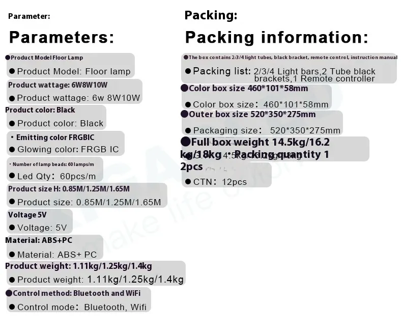 Lamp tube * * 2/* 3/* 4+black bracket * 1+light strip * 1 roll+remote control * 1+manual * 1
