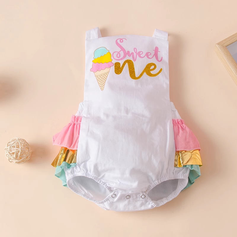 Key Features of the Color Ice Cream Skirt Lace-up Baby Bodysuit Triangle Rompers