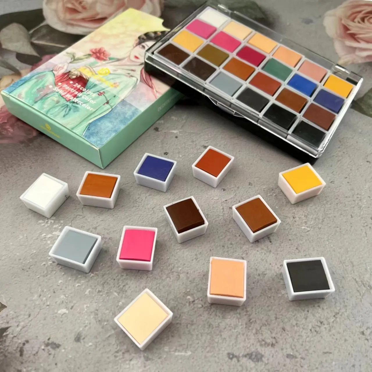 Color: 24 color skin color series solid color watercolor
